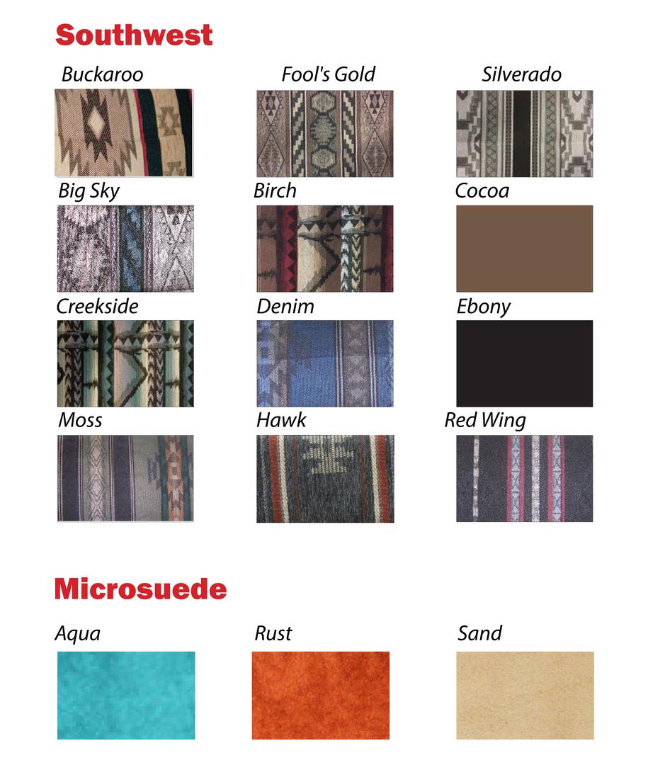 Southwest Pad | Big Sky, Birch, Buckaroo, Cocoa, Creekside, Denim, Ebony, Fool's Gold, Hawk, Microsuede – Aqua, Microsuede – Rust, Microsuede – Sand, Moss, Red Wing, Silverado |